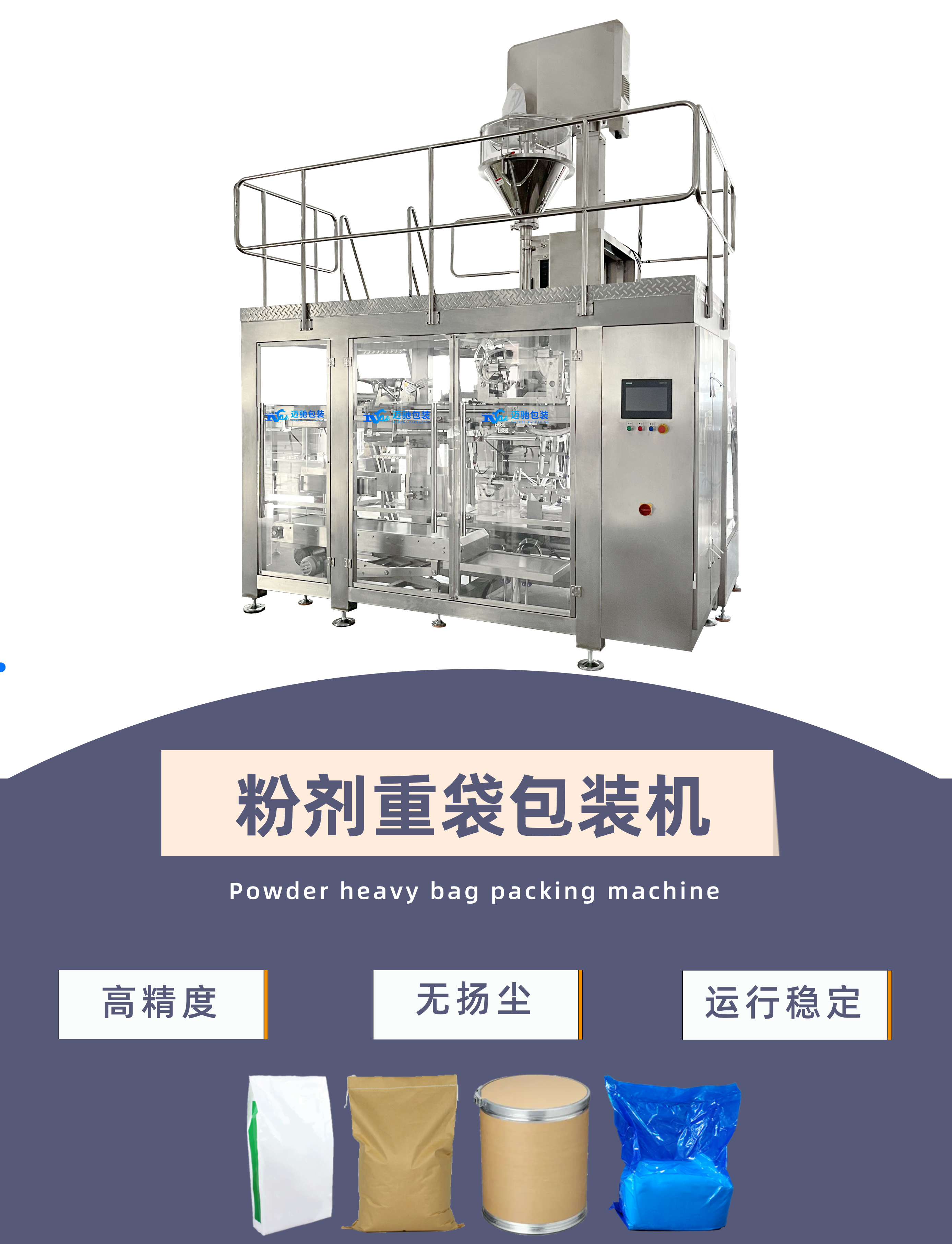 邁馳是一家專業(yè)生產(chǎn)全自動(dòng)顆粒重袋包裝機(jī)廠家,可根據(jù)客戶不同粉料特性定制一對一方案,可抽真空定型,高精度計(jì)量、無塵化包裝。26年包裝行業(yè)經(jīng)驗(yàn),助力生產(chǎn)企業(yè)穩(wěn)定生產(chǎn)...